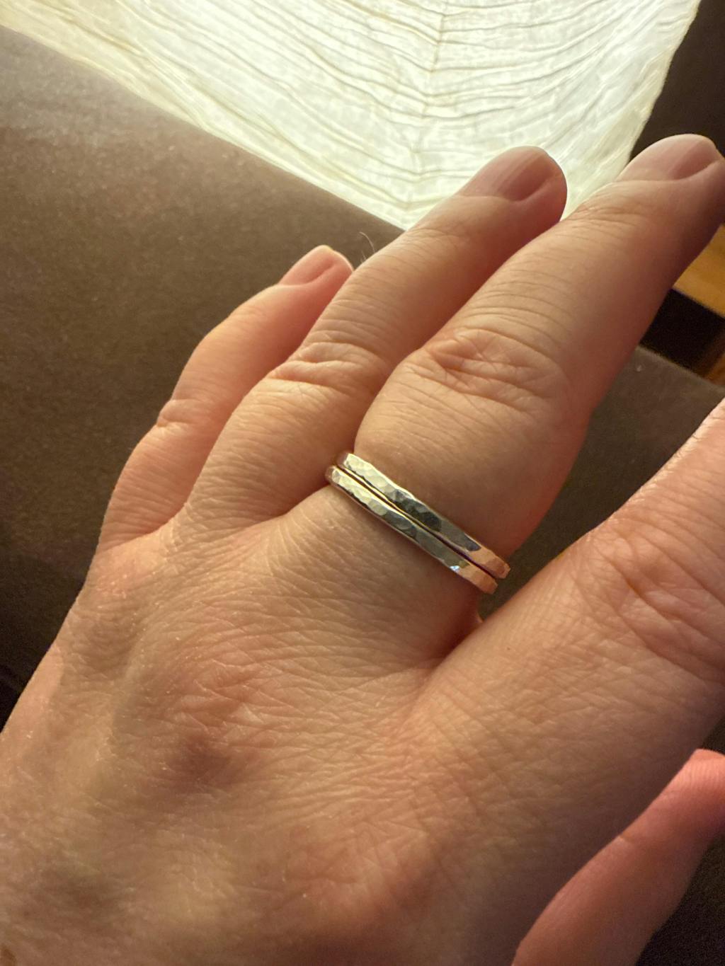 Viele Kundinnen erzählen mir, dass sie mit einem Vorsteckring angefangen haben und jetzt mehrere tragen - "gerne wieder" und "würde ich sofort wieder kaufen" sind Sätze, die ich oft höre. Die Ringe sind leicht genug, um mehrere gleichzeitig zu tragen, und robust genug, um ein Leben lang zu halten.