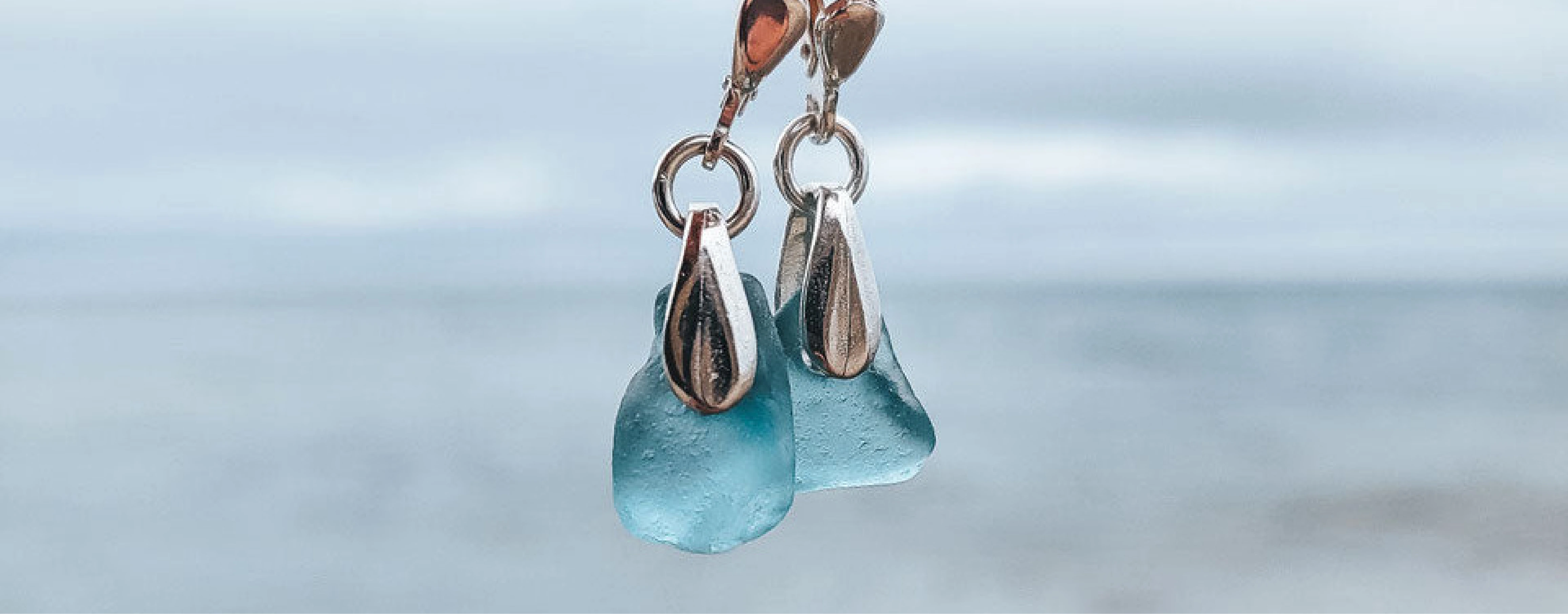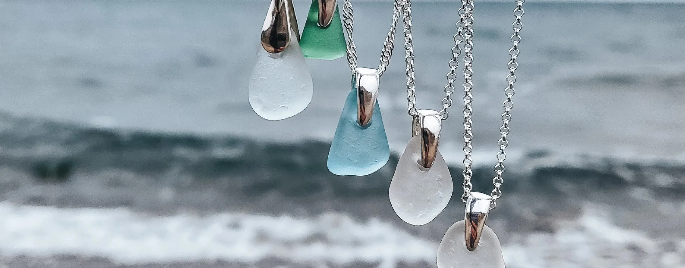 Maritimer Silberschmuck mit echtem Seeglas von Rügen